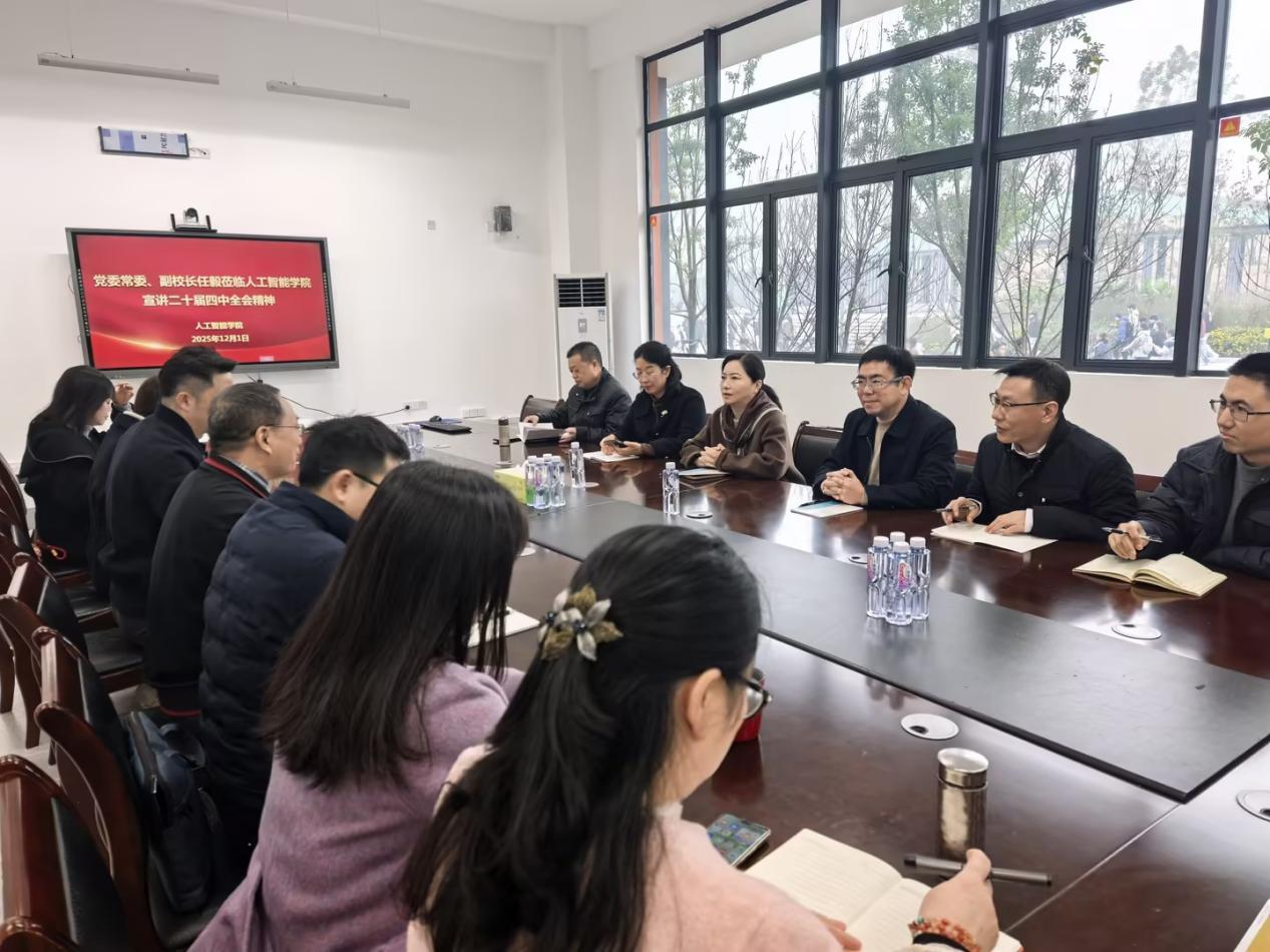 为深入学习贯彻党的二十届四中全会精神,2025年12月1日上午,学校党委常委、副校长任毅在茶园校区信智楼B103会议室为人工智能学院、机关党委科研处党支部宣讲了党的二十届四中全会精神。会议由人工智能学院党委书记何希平主持。